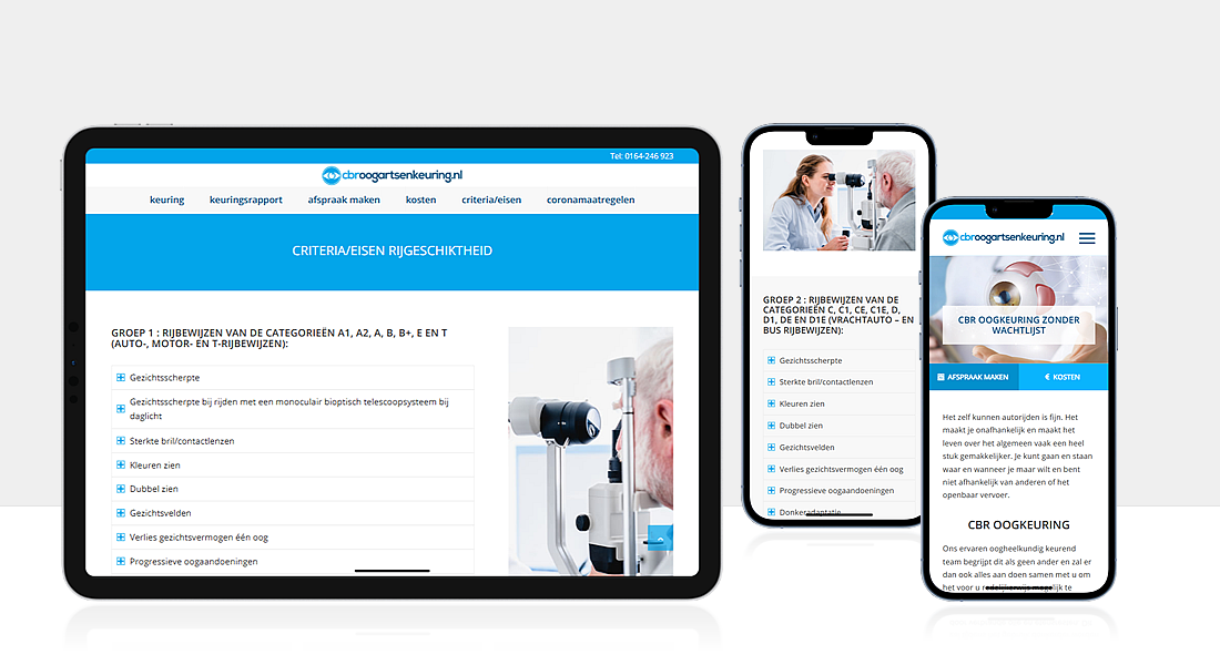 Omdat de doelgroep vooral via Google zoekt op “CBR oogkeuring” en gerelateerde termen, lag onze focus op SEO-optimalisatie en een duidelijke contentstructuur.