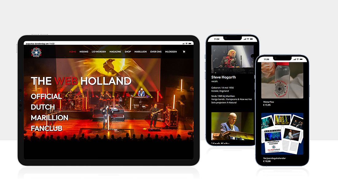 Voor The Web Holland – de officiële Nederlandse fanclub van Marillion – ontwikkelden we een fanclubwebsite die informeert, verbindt en inspireert. Met een ledenportaal, webshop en directe koppeling met social media.